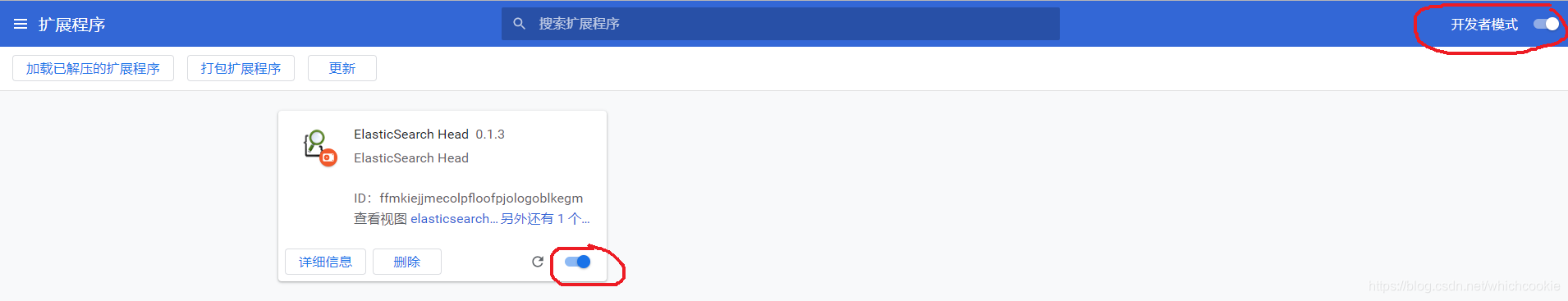 加载成功后将开发者按钮和启用按钮打开。