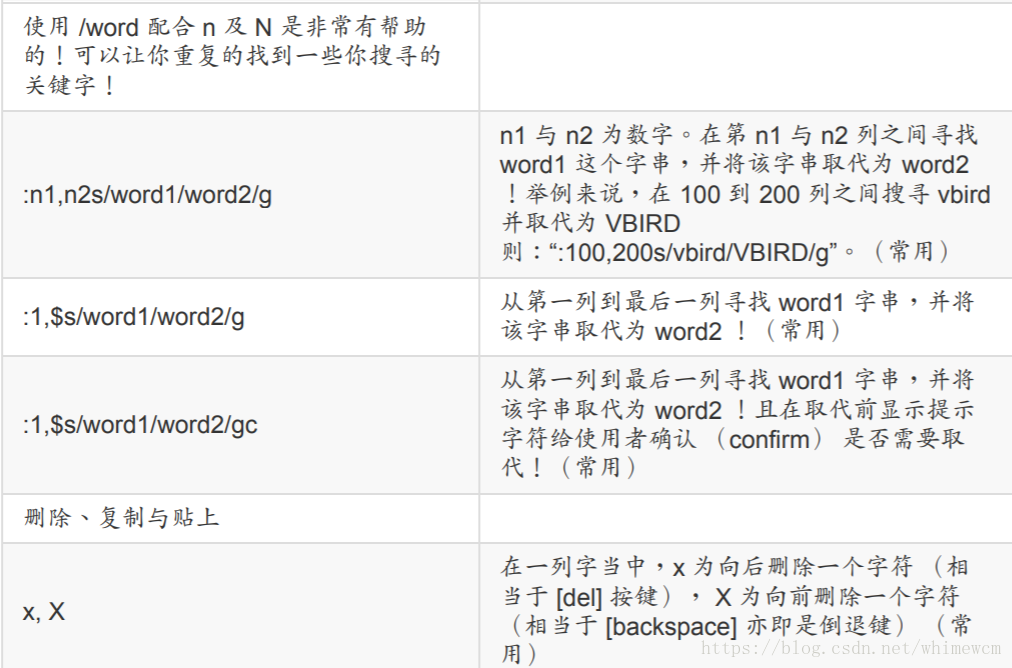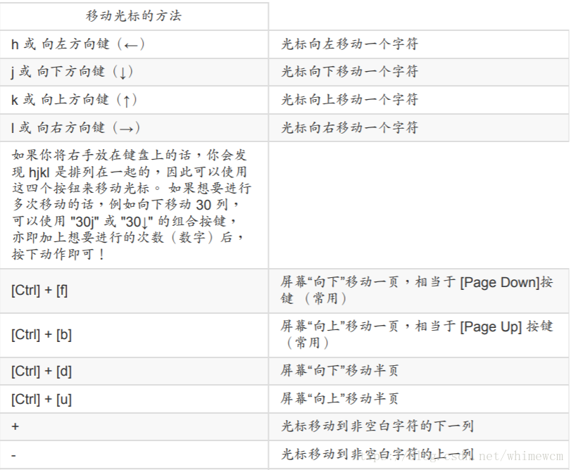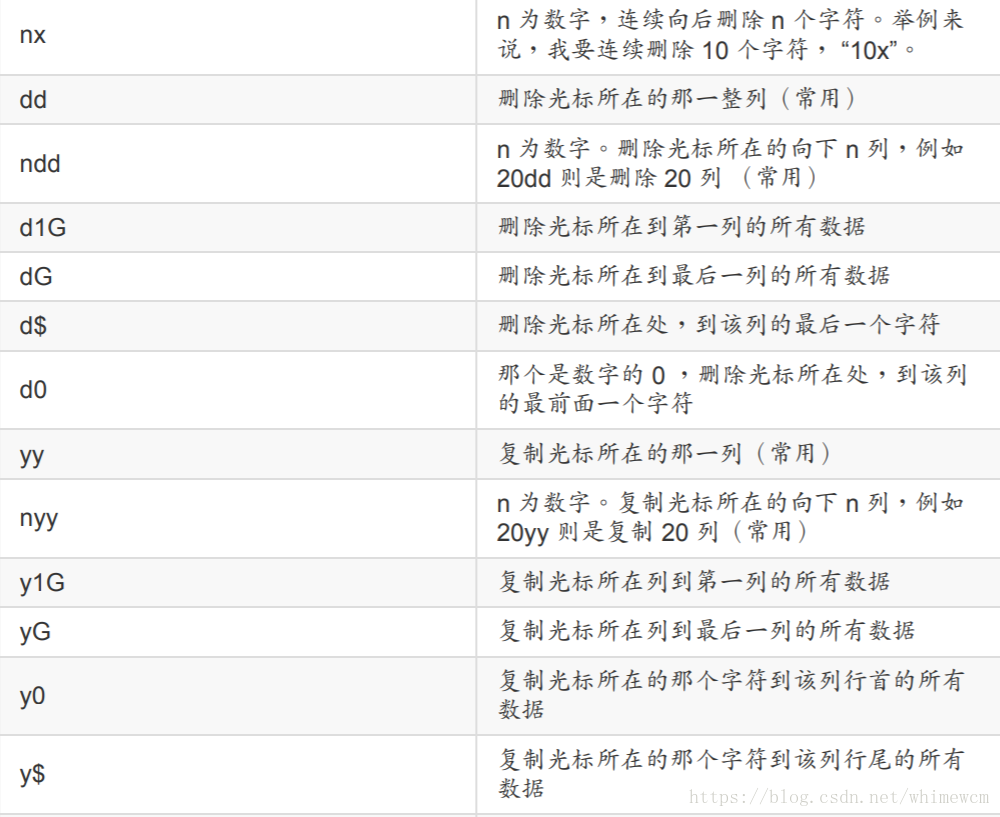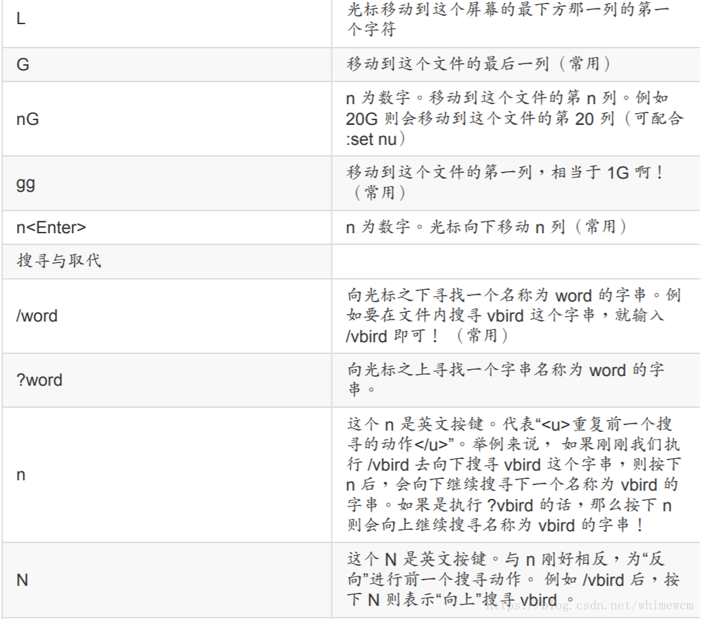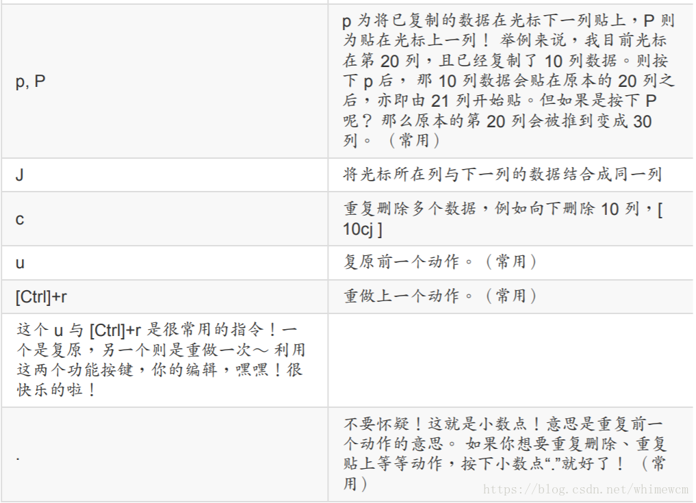 - 第一部份:一般指令模式可用的按钮说明,光标移动、复制贴上、搜寻取代等