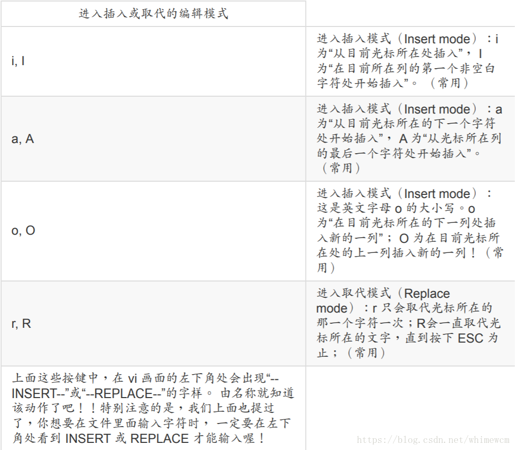- 第二部份:一般指令模式切换到编辑模式的可用的按钮说明