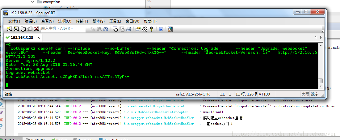 显示该websocket已经连上了linux启动的服务器