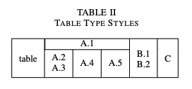 \multirow{4}{*}{table}& \multicolumn{3}{|c|}{A.1}& \multirow{4}{*}{{\makecell[c]{B.1\\ B.2}}}& \multirow{4}{*}{C} \\