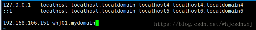 192.168.106.151 whj01.mydomain (在最后一行添加)
