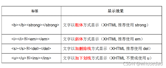 b i s u只有使用,没有强调的意思;strong em del ins语义更强烈