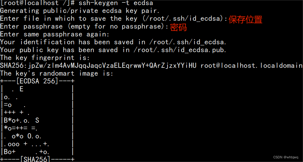 ssh-keygen -t ecdsa 密钥加密方式 :ecdsa、rsa、dsa,一般用ecdsa