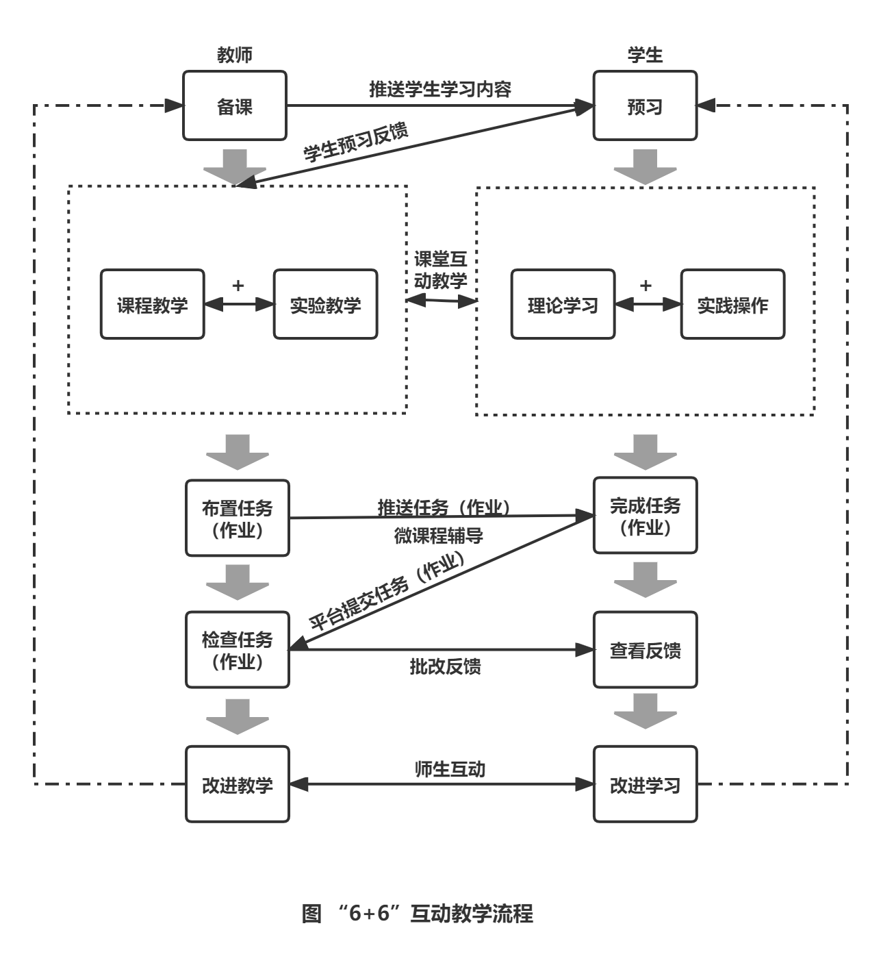 唯众云课堂还可根据教学的需求进行公有云、私有云、混合云等不同方式的部署,可以适应学校各种不同的复杂网络环境和资产入库需求而且性价比高、稳定性强。平台还将科研、技能大赛、1+X认证等全流程无缝衔接各种计算机网络、智能化安防、物联网、人工智能等前端应用场景,更加高效开展具有多种功能的开放式、全流程、理实一体化的计算机网络ICT教学平台。基于唯众云课堂的“6+6”互动教学流程如下图所示。