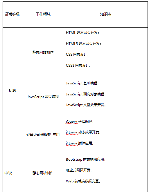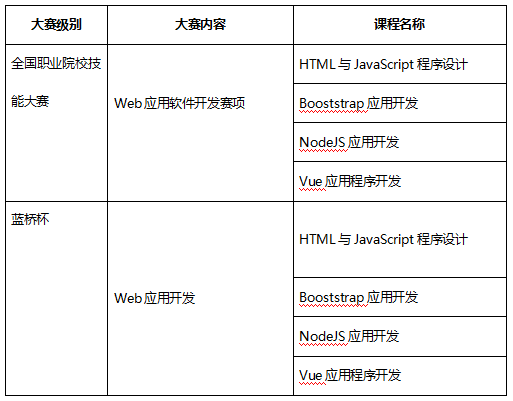 1+X试点Web前端开发考证教学资源包包含专业基础课程: 计算机应用基础、静态网页设计与制作、C语言程序设计、数据结构、HTML5 + CSS3 Web 前端开发技术、计算机专业英语等。专业核心课程:HTMI5 与 JavaSeript 程序设计、UI 设计基础、美学基础、Bootstrap 应用开发、NodeJS 应用开发、Vue 应用程序开发、Web 前端综合实战等。