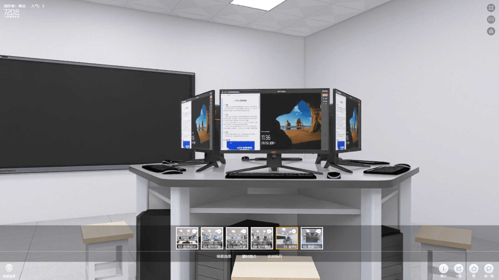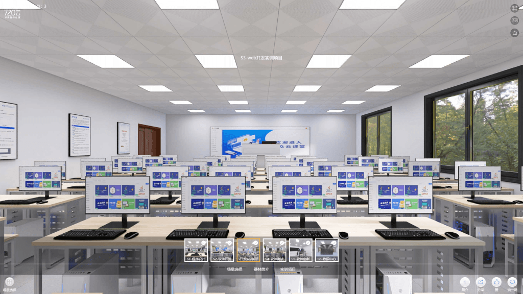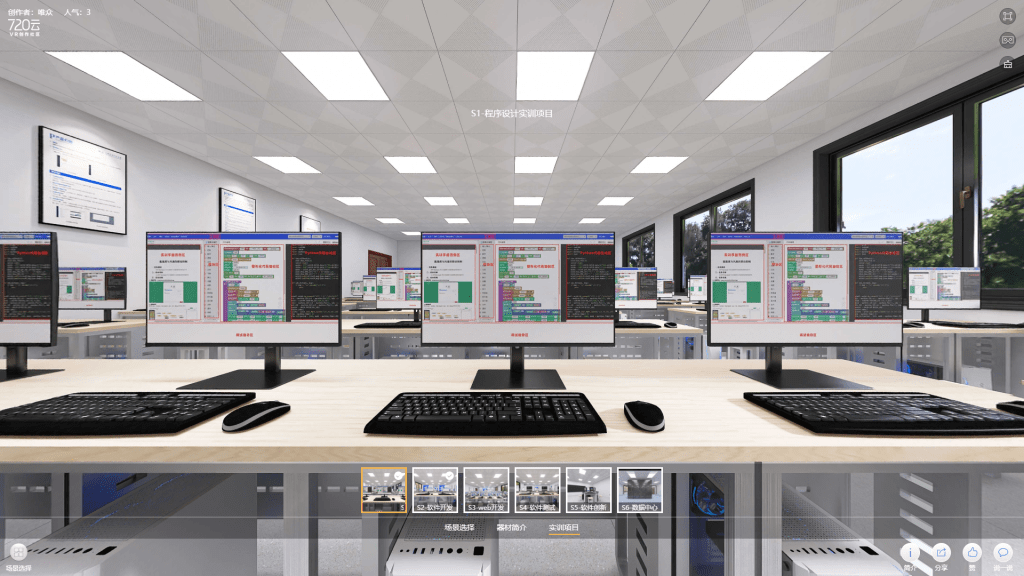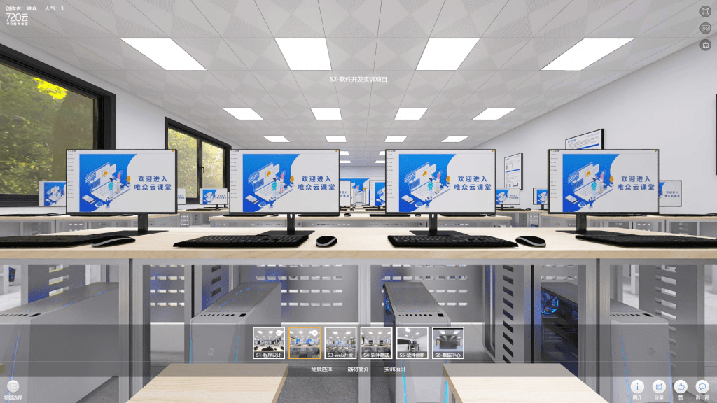 VR 为计算机实验平台建设提供了革命性解决方案,其优势主要体现在四个方面:①依托三维可视化技术,可直观呈现计算机系统的内部结构与工作原理,显著提升学生的空间认知能力;②虚拟环境支持无限次实验重复与参数调整,便于学生深入探索各类边界条件;③分布式架构打破时空限制,实现教学资源的跨地域共享;④虚拟实验环境完全规避实体操作的安全风险,同时大幅降低实验教学成本。这些优势使 VR 成为提升计算机实验教学质量的理想选择。