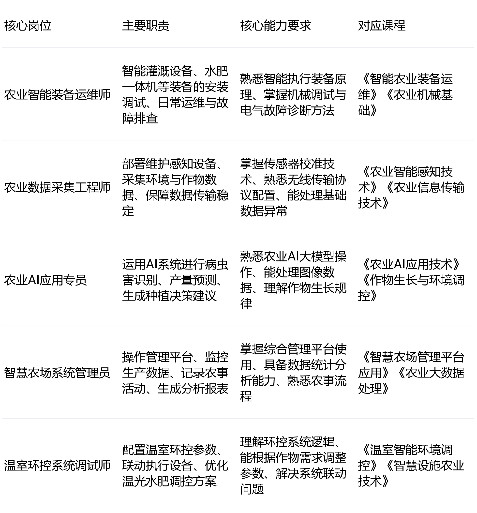 就业方向:智慧农场系统管理员、温室环控调试师、农业物联网系统集成助理、农场技术顾问