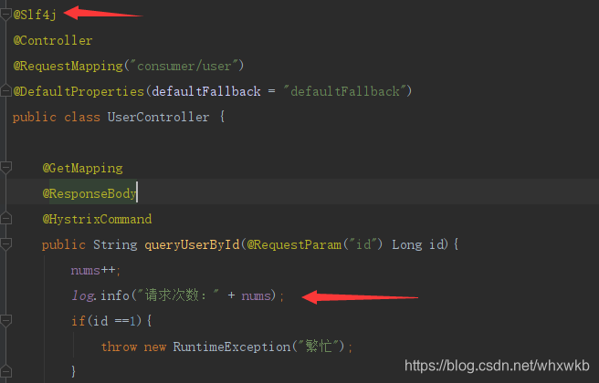 3.1.在类上面加上注解@Slf4j,或者:private final static Logger log= LoggerFactory.getLogger(UserController.class);