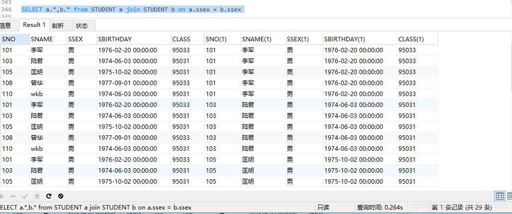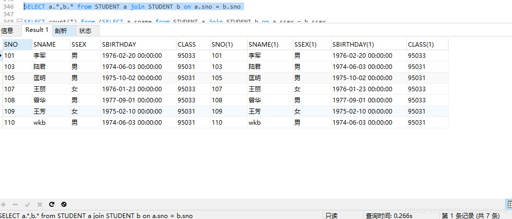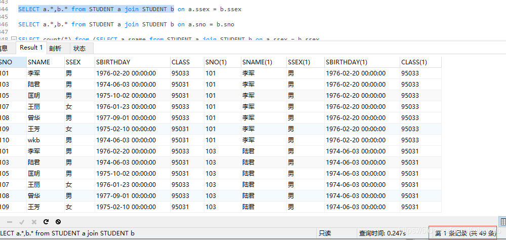 SELECT a.*,b.* from STUDENT a join STUDENT b 后面的on条件是,在SELECT a.*,b.* from STUDENT a join STUDENT b 语句结果中进行条件过滤。