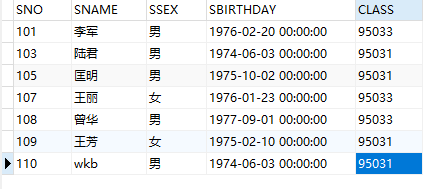 student表: