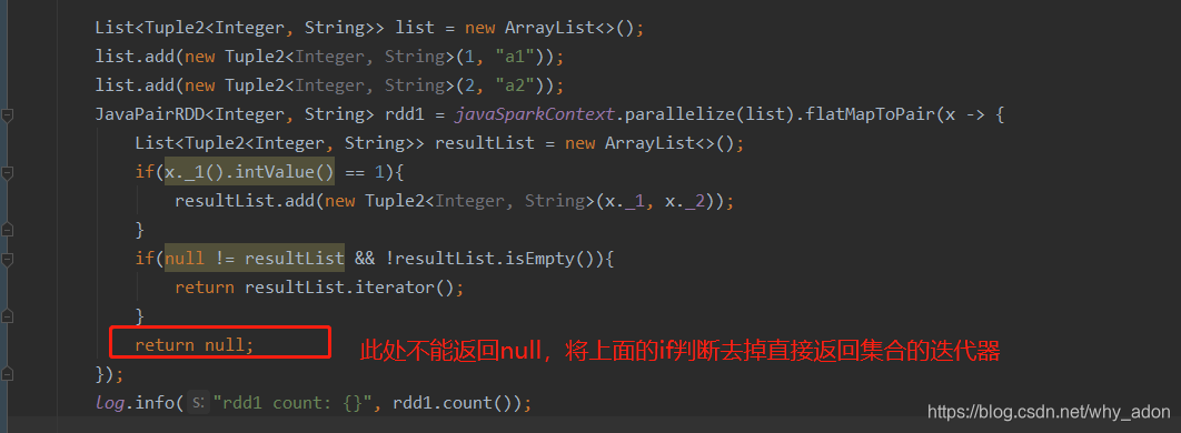 java版spark使用faltmap时报空指针错误,错误如下: