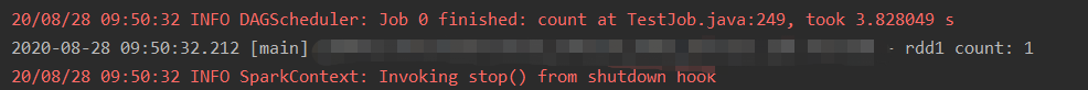 20/08/28 09:41:44 INFO DAGScheduler: Job 0 failed: count at TestJob.java:252, took 3.555955 s