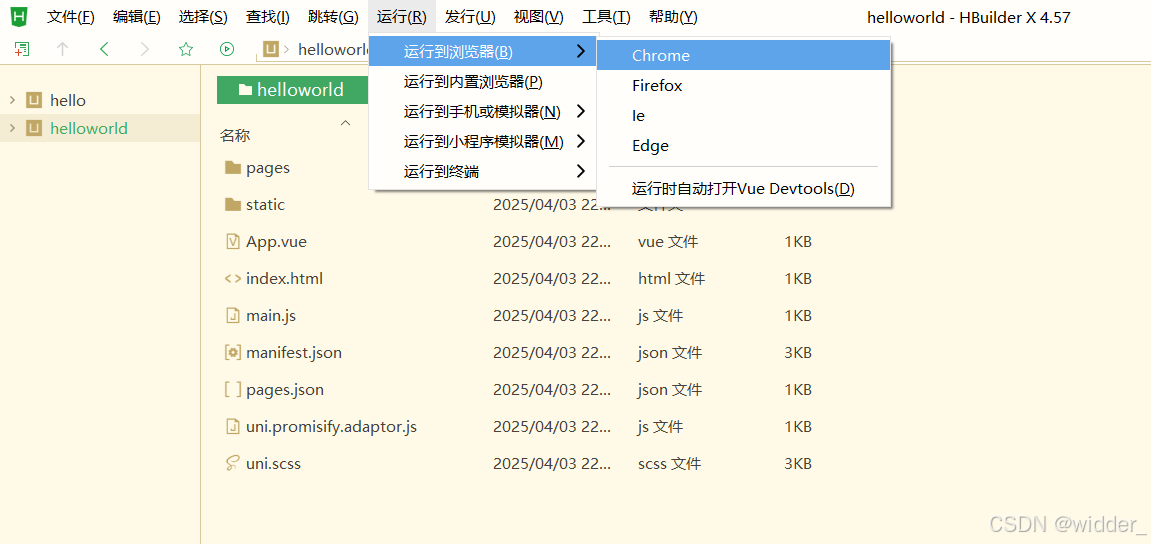 在浏览器中运行:右键点击项目 → 选择“运行到浏览器”。(这里需要安装插件,按照给的提示安装即可,第一次安装的时间比较长)