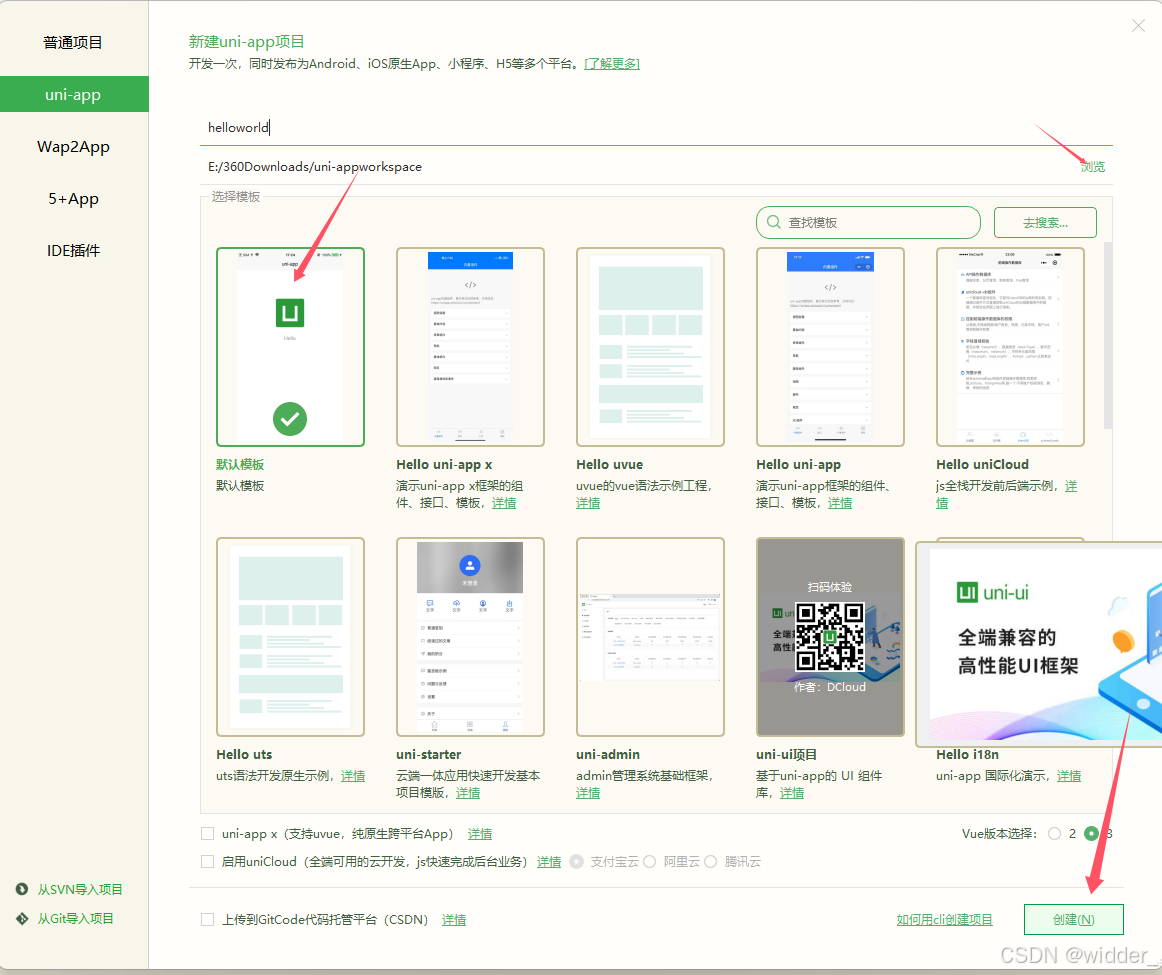 可以在D盘建一个文件夹uniapp-workspace,以后创建的项目都可以放在这个文件夹中。