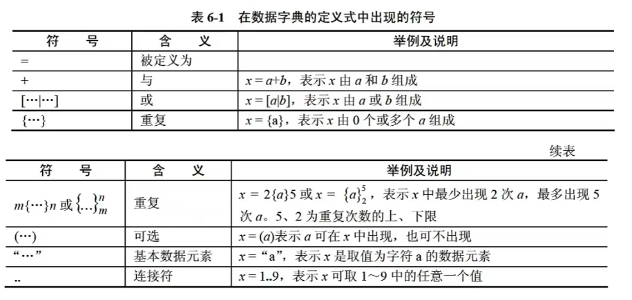- 数据项条目:是数据的最小单位(不可再分解),对数据项的定义包括数据项的名称、编号、别名、数据类型、长度、取值范围等。