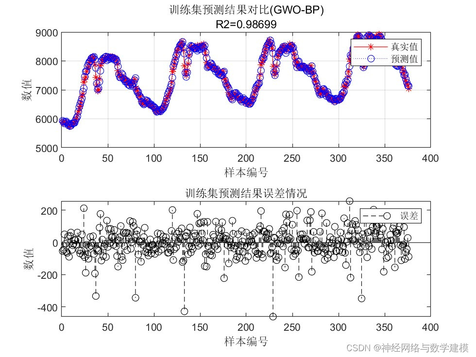 本代码基于Matalb平台编译,将GWO(灰狼算法)与BP神经网络结合,进行数据时序回归预测
