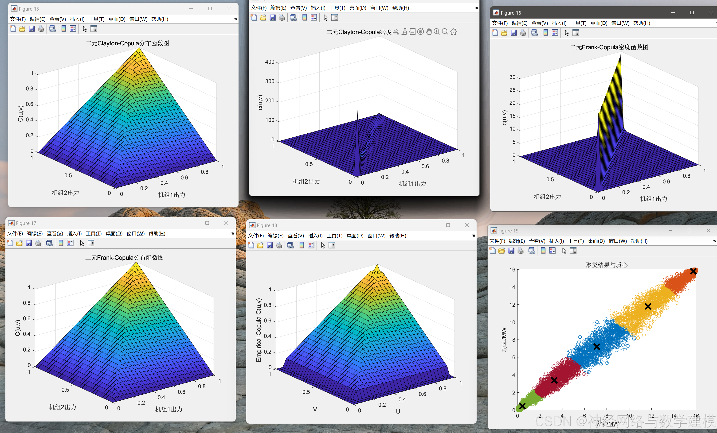 完美复现《考虑多风电场出力 Copula 相关关系的场景生成方法》中的场景生成部分,考虑多风场出力相关性的可再生能源场景生成/风电场景生成,并通过聚类算法场景削减成几个场景,每个场景都有确定的出现概率。