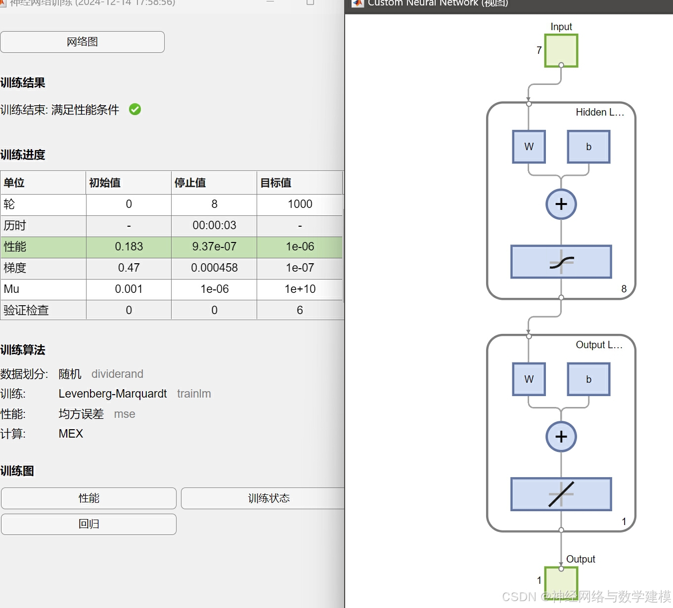 输入训练的数据包含7个特征,1个响应值,即通过7个输入值预测1个输出值。(数据导入后自动归一化,提升泛化性)