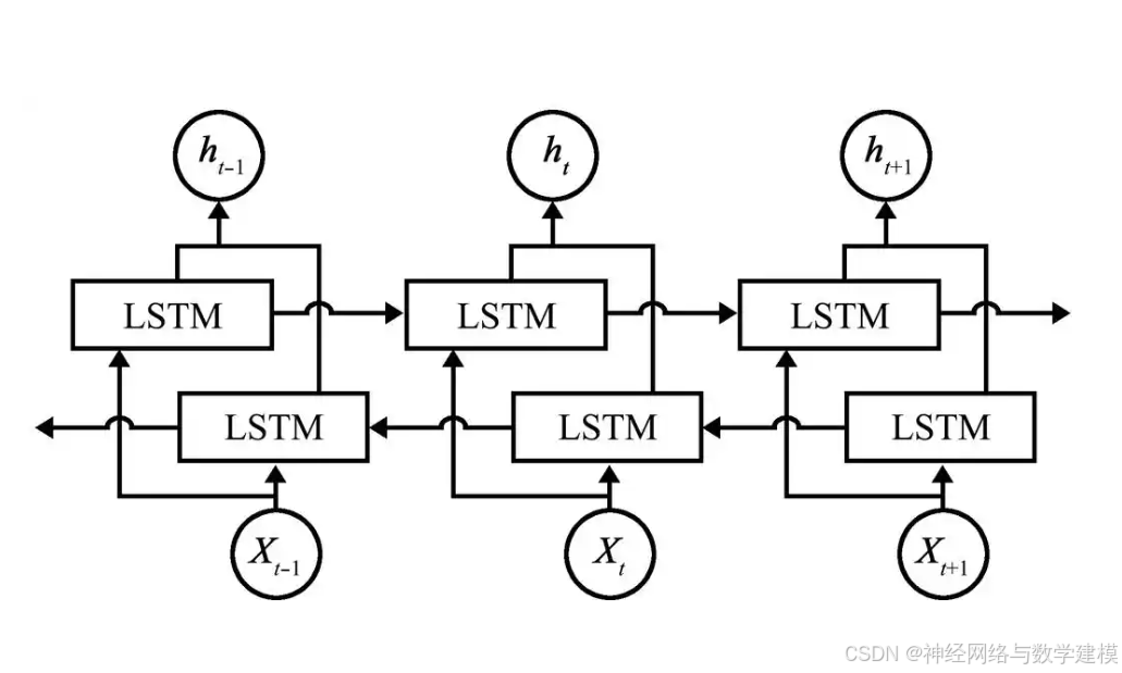 Bi-LSTM由两个独立的LSTM层组成:一个处理正向序列,另一个处理反向序列。这两个LSTM层分别独立运作,并最终将各自的隐藏状态输出进行拼接,作为该时刻的整体表示。这种设计使得Bi-LSTM能够在任意给定的时间点上利用过去和未来的信息