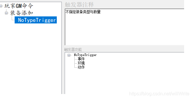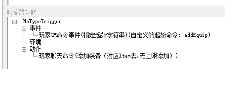 一个触发器表示一个具体的功能,比如玩家GM命令中的(不指定装备类型与数量)功能。