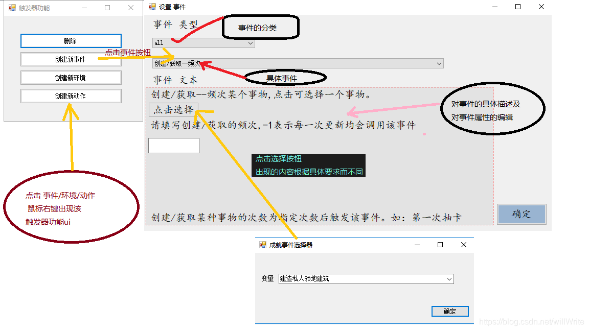事件:引发该功能的原由。比如小试牛刀功能的事件为-消灭一只野怪。
