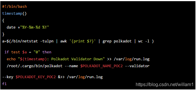 要触发的脚本(monitorValidator.sh)将检查是否没有运行polkadot进程