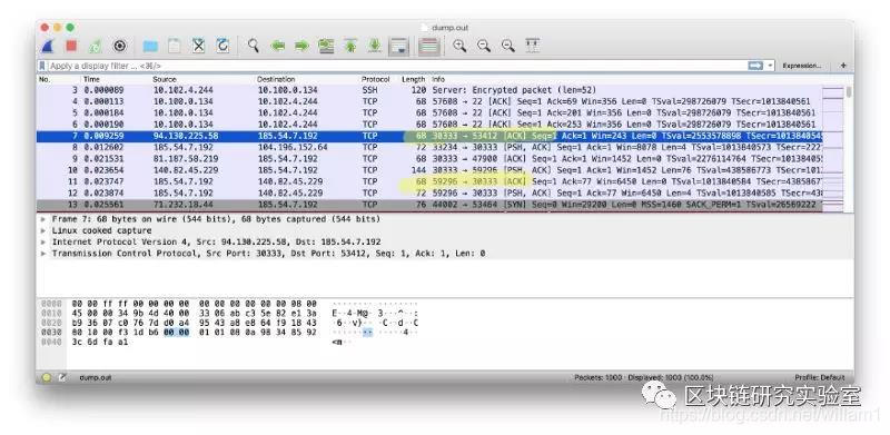 并将其加载到Wire Shark中。 正如下面的截图所示。 验证节点使用了大量的出站端口。