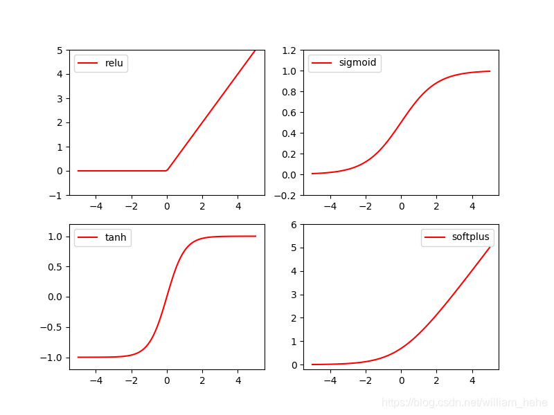 针对四种常用的激活函数进行可视化。