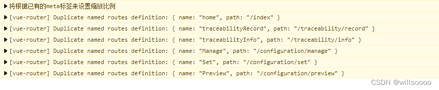 在动态添加路由的时候会在控制栏出现各种各样的路由警告,刚开始以为是路由name重名问题引起,后查询相关资料是动态路由添加引起的,在router/index.js文件下创建一个方法resetRouter()