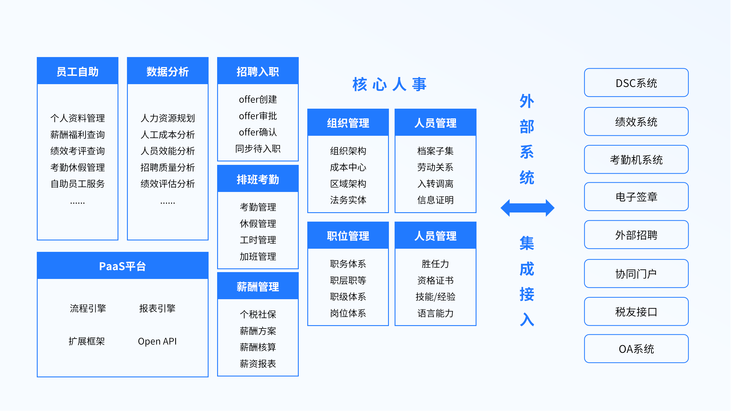随着公司的快速成长与上市后公司治理结构发生变化,集团总部需对三大研发中心及海外职场实施统一管控。原有系统弹性不足,无法及时响应组织架构与人事规则的变动,缺乏灵活的权限隔离与数据共享机制,难以满足上市公司对数据合规性和跨区域协作的要求。同时,集团战略规划也对人力资源管理数字化提出了更高的要求,原有功能模块已无法适应现阶段业务发展节奏。