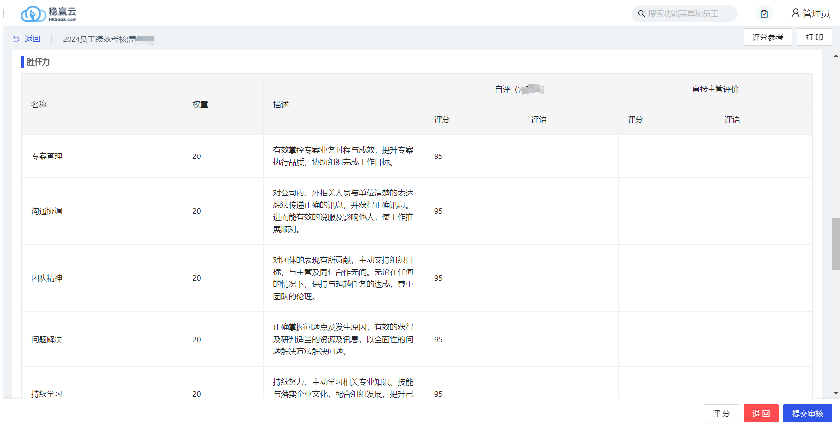 稳赢云绩效管理功能支持自定义考核模板和多种考评方式(如KPI、OKR、360评估等),企业可根据实际情况按需设计绩效考核结构。考核进度实时更新,绩效执行过程全程可视,考评工作如果存在异常,员工也可及时反馈给相关部门领导,这不仅简化了考评流程、提高了工作效率,还使得考评结果更加公正、透明。管理层能够更好跟进绩效考评过程,并能及时对下级进行督导和帮助,从而提升赋能效果,确保目标达成。