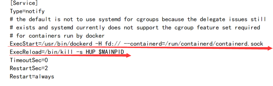 - 把 ExecStart=/usr/bin/dockerd -H fd://--containerd=/run/containerd/containerd.sock