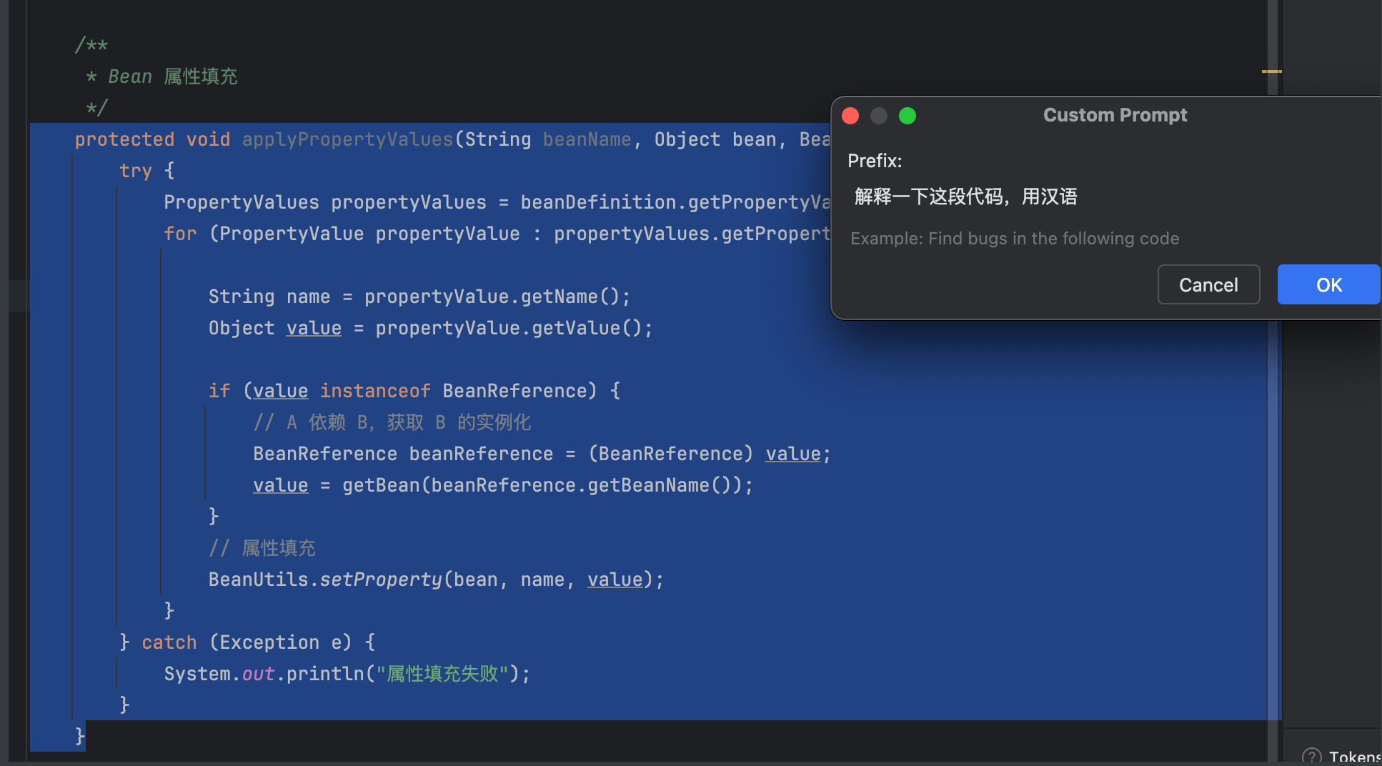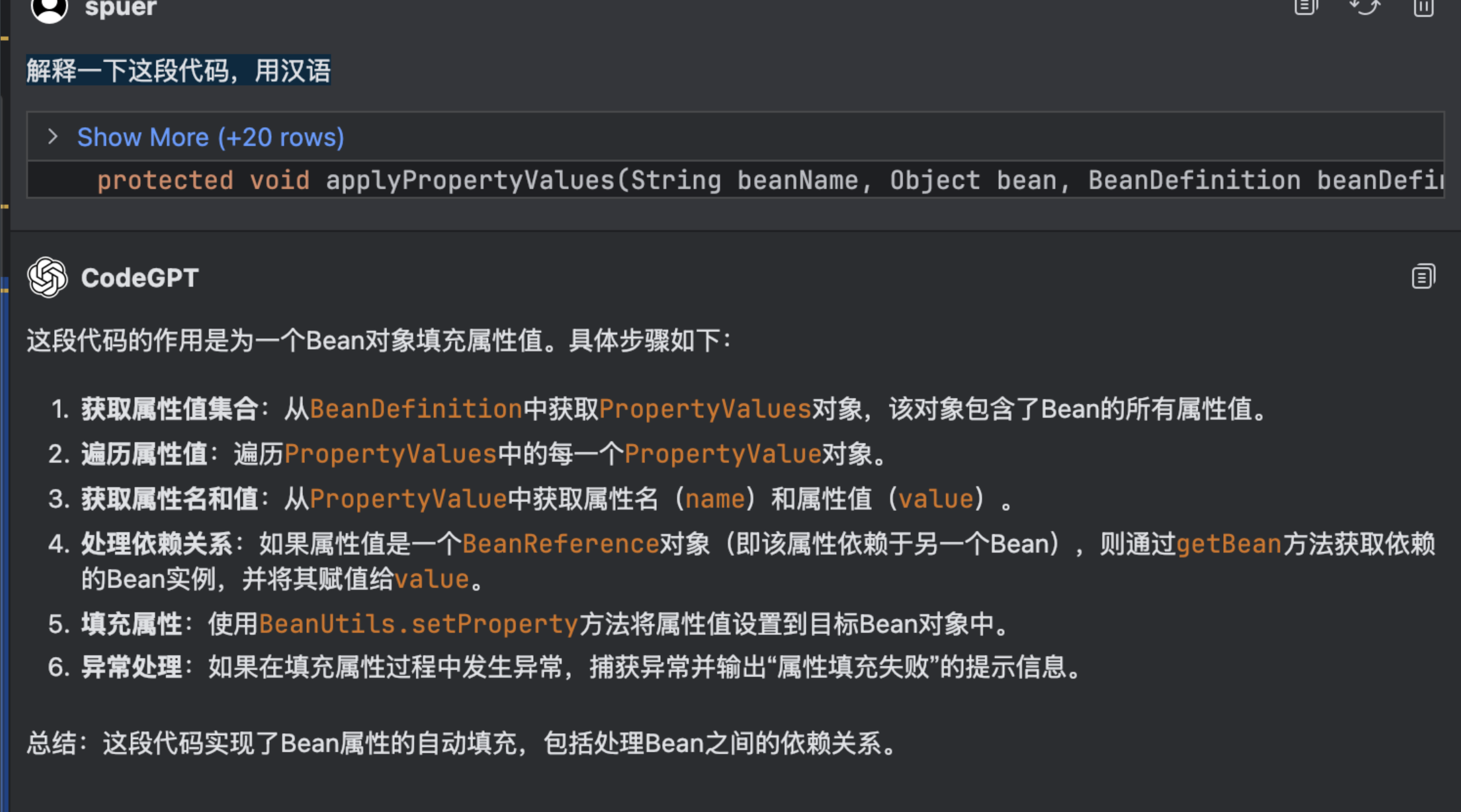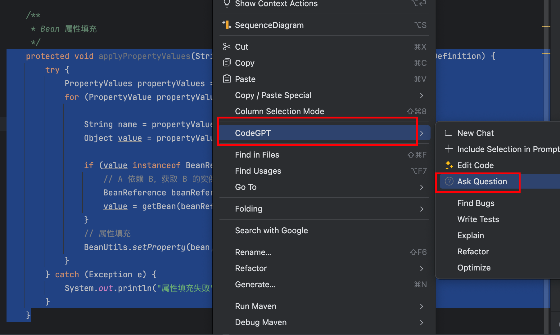 5.3.1 选中一段代码; ->右键-> 选择CodeGPT - > 选择Ask Question
