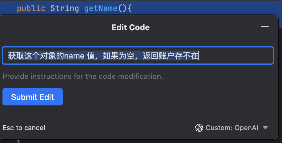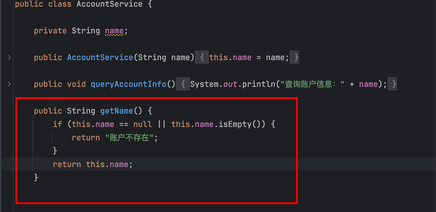 要求: 比如我要写一个 getName 方法,并且,如果name 值为空,则返回账户不存在;