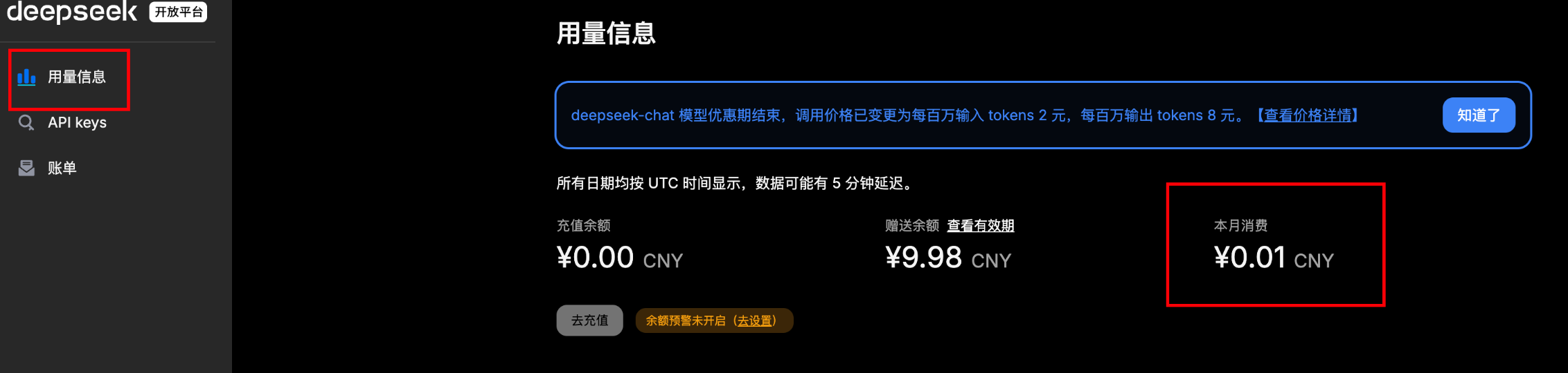进入https://platform.deepseek.com/usage ;