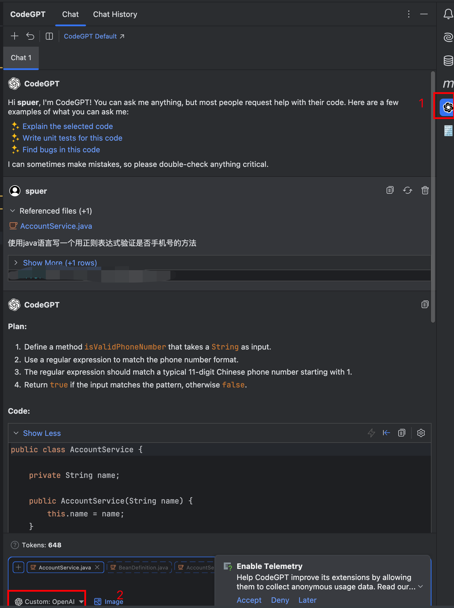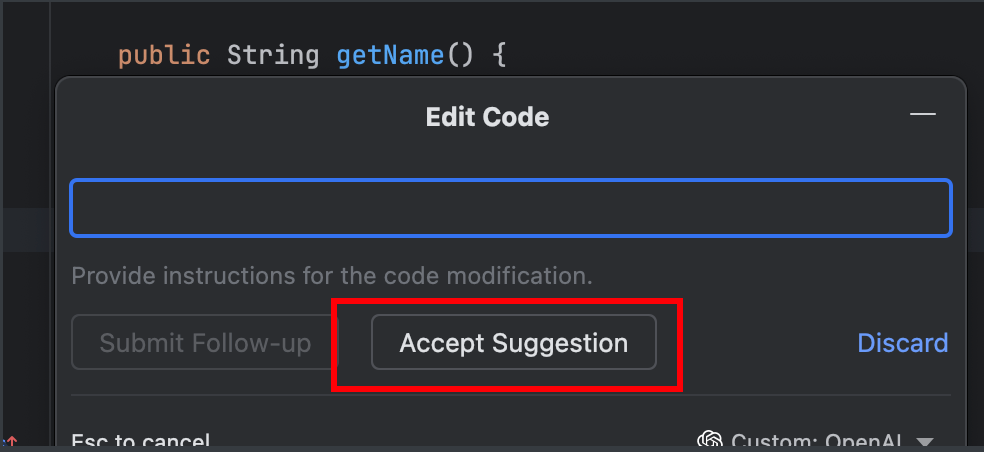 5.2.5 点击 Accept Suggestion ,接受CodeGPT 的建议;