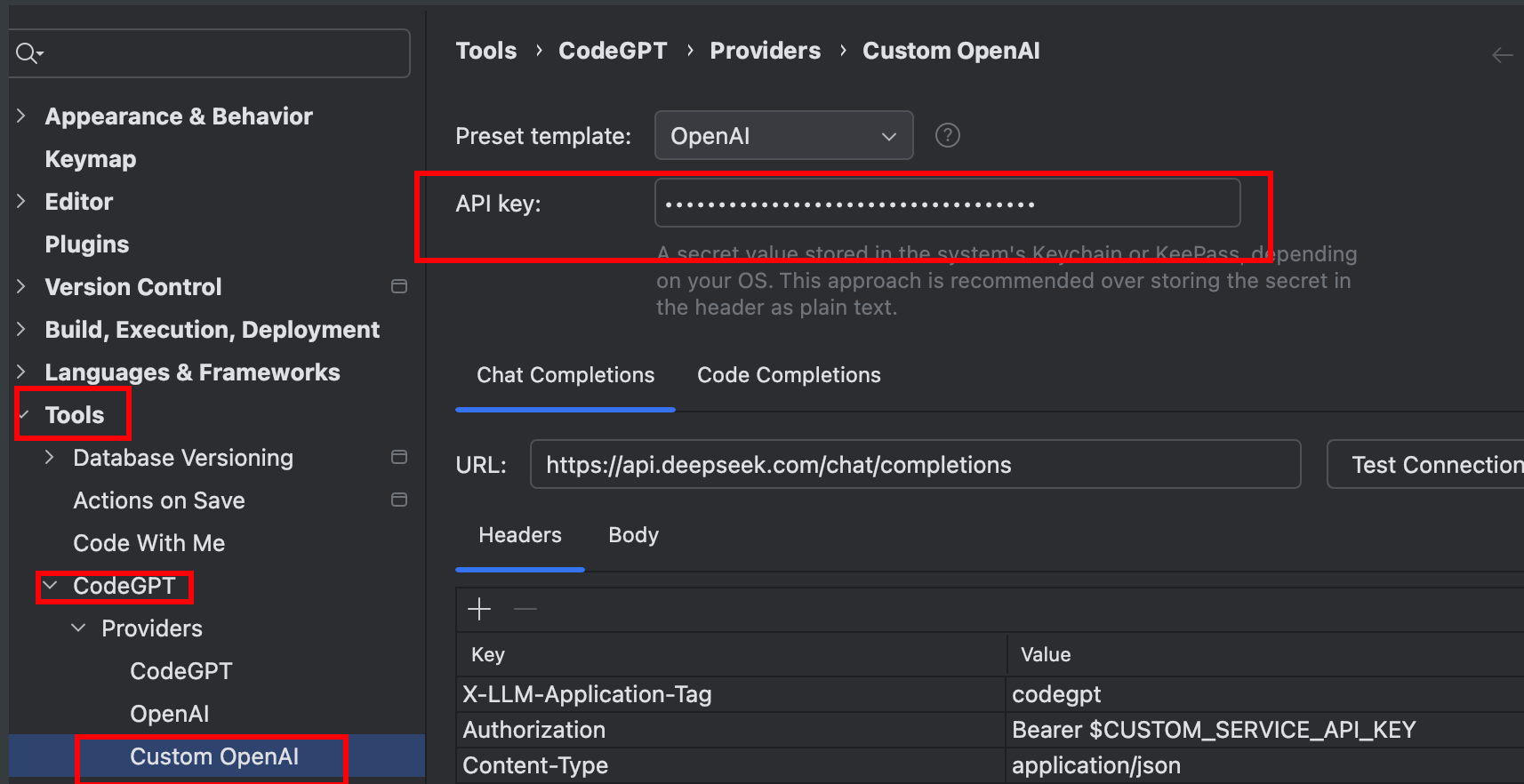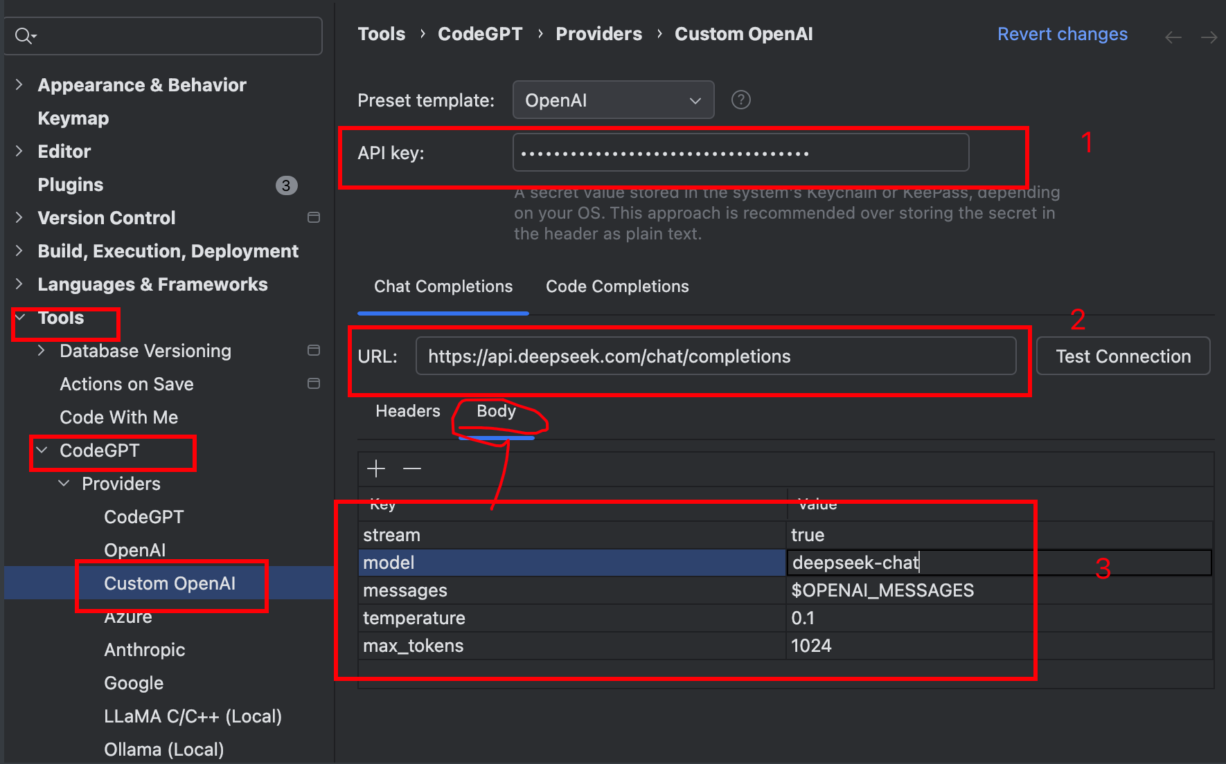 URL粘贴为: https://api.deepseek.com/chat/completions