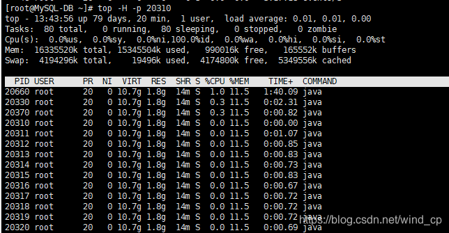 top -H -p pid来找到某进程下cpu使用率比较高的一些线程