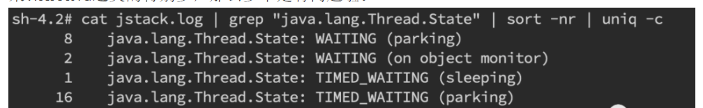 cat jstack.log | grep "java.lang.Thread.State" | sort -nr | uniq -c