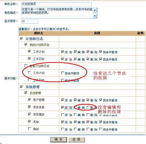 我们可以做一个维护程序,让客户自行添加。先在角色表里添加一个角色,然后选择角色可以看到的功能页面,最后选择在这个功能结点里可以做的操作(添加、修改等)。这样一个角色就诞生了。