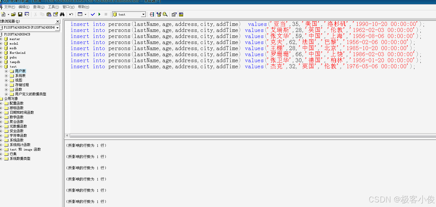 insert into persons(lastName,age,address,city,addTime) values('艾瑞斯',28,'英国','伦敦','1962-02-03 00:00:00');