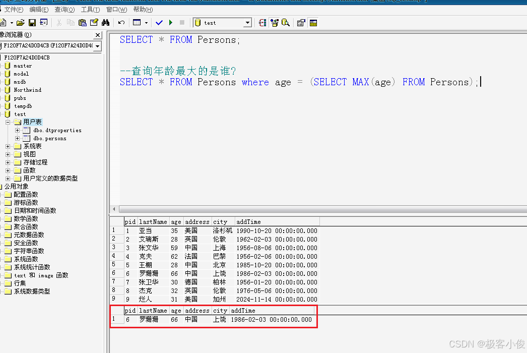 比如我们现在要查询年龄最大的是谁?
