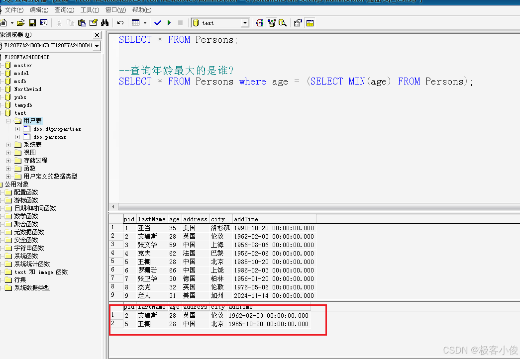 比如我们现在要查询年龄最小的是谁?