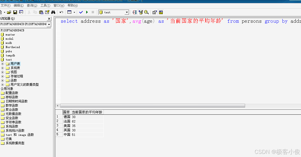 比如: 我们现在要统计每个国家的人的平均年龄!