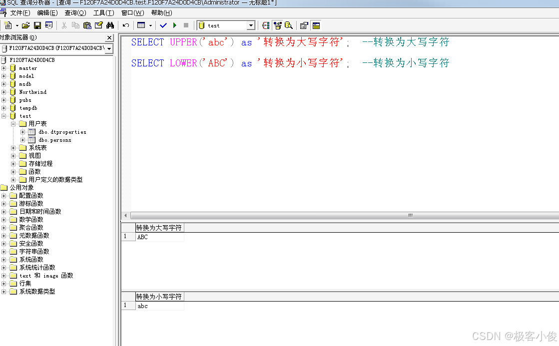 SELECT LOWER('ABC'); --转换为小写字符