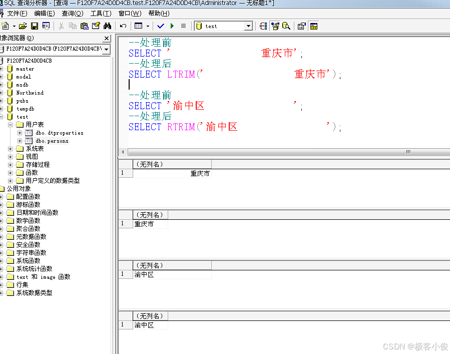 SELECT RTRIM('渝中区 ');