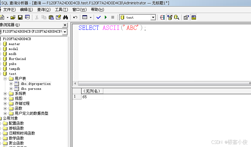 这个函数可以返回字符表达式最左端字符的ASCII码值