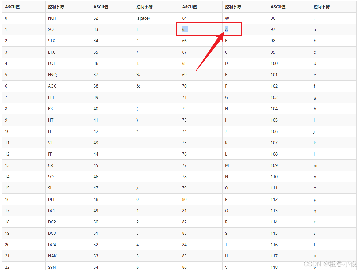 对于ASCII码这里我就不过多赘述了,感兴趣的自行查阅ASCII表吧~~