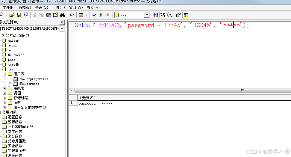 SELECT REPLACE('password = 12345', '12345', '*****');